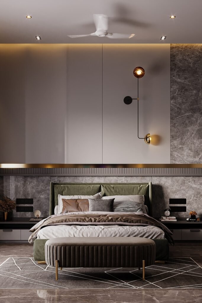 This soft sage paneling creates a calm, grounded atmosphere that feels perfect for rest and relaxation.