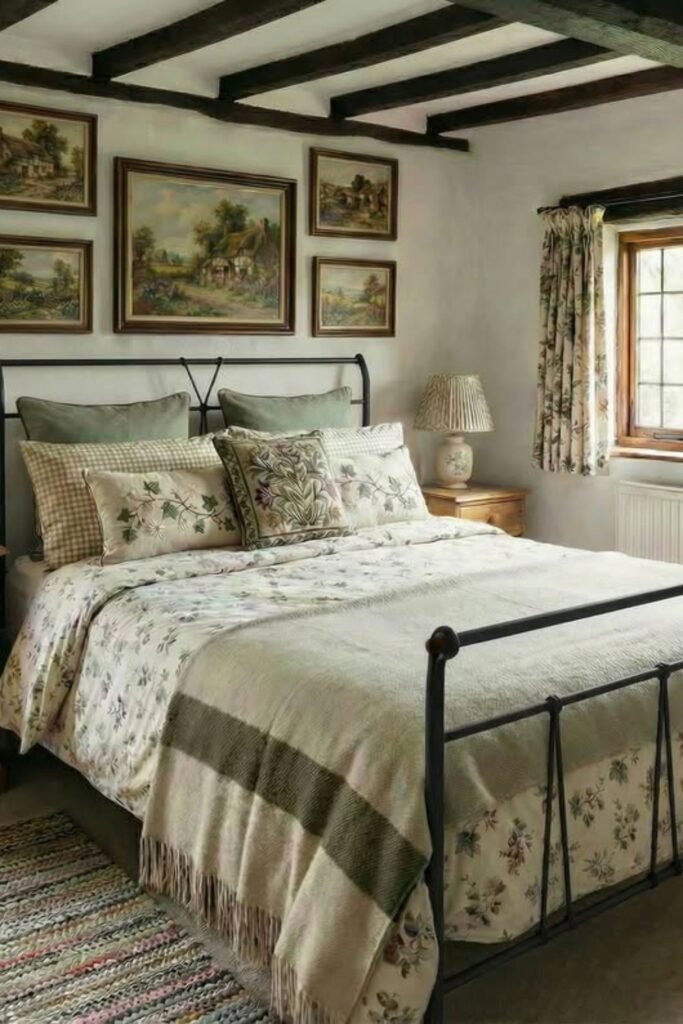 This works best in cottage-style or classic bedrooms where warmth matters more than minimalism.