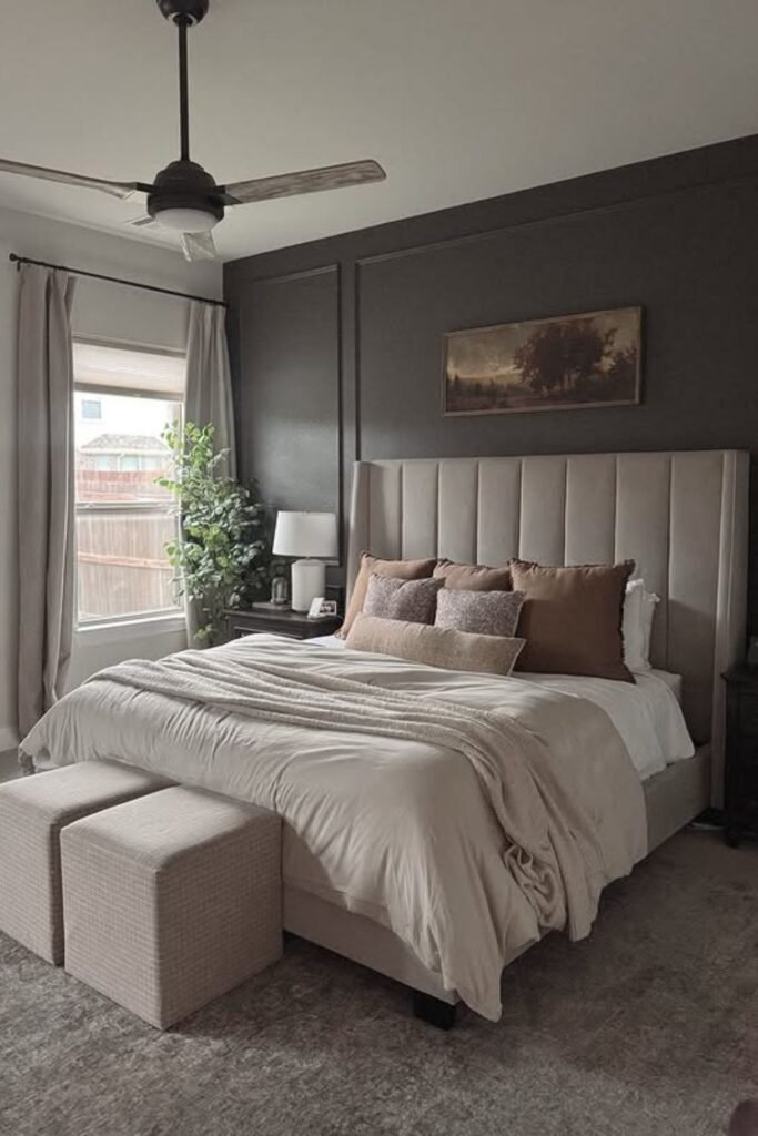 It’s a great option for smaller rooms where dark paint might feel heavy. It adds quiet luxury to a bedroom without needing strong color.
