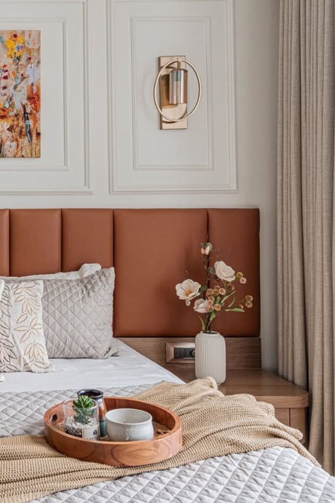 You can just paint the full headboard wall a clay-inspired shade and layer natural decor to keep your vibe grounded.