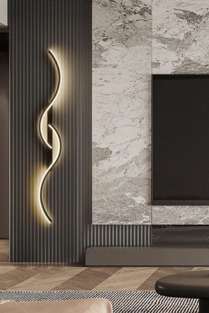 You don’t always need color for your accent wall to grab attention, light can do it for you.