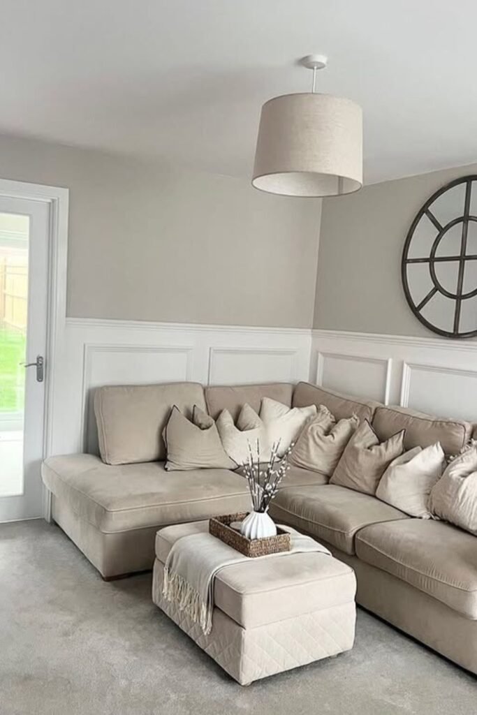 When you want soft contrast without chaos, you can use lower paneling to ground the space while the lighter upper wall lifts the ceiling visually.