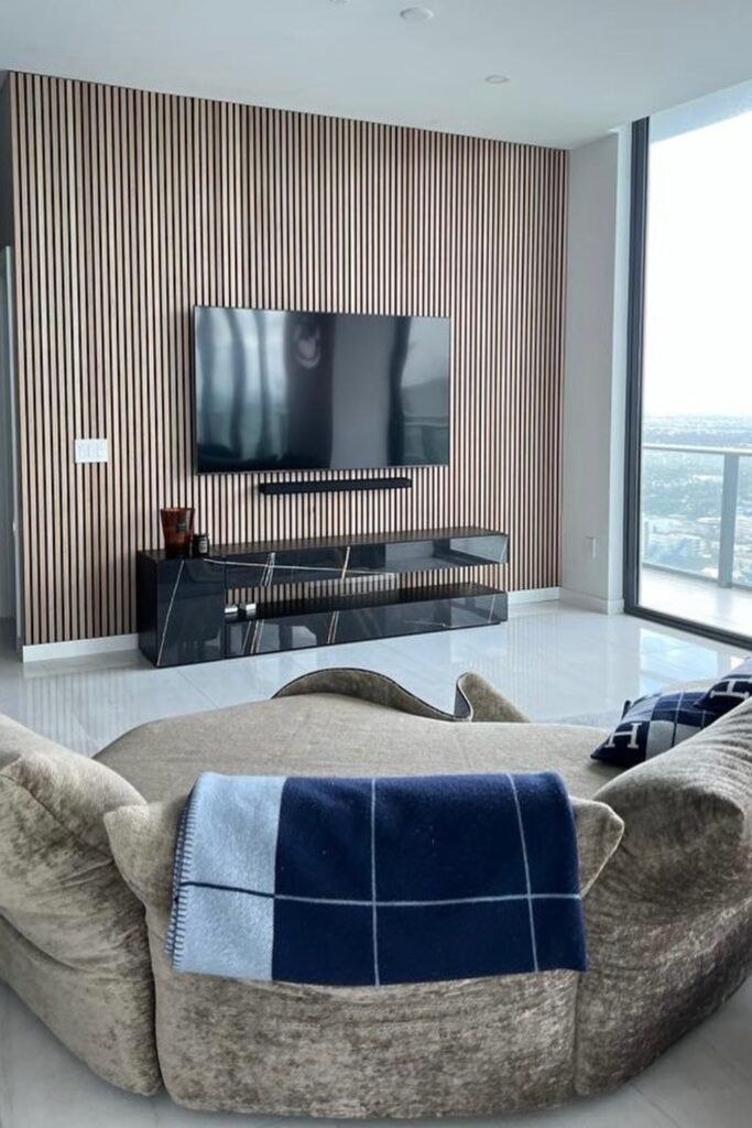 Your vertical fluted panels with a warm LED strip turn the wall into a soft statement without overwhelming the room.