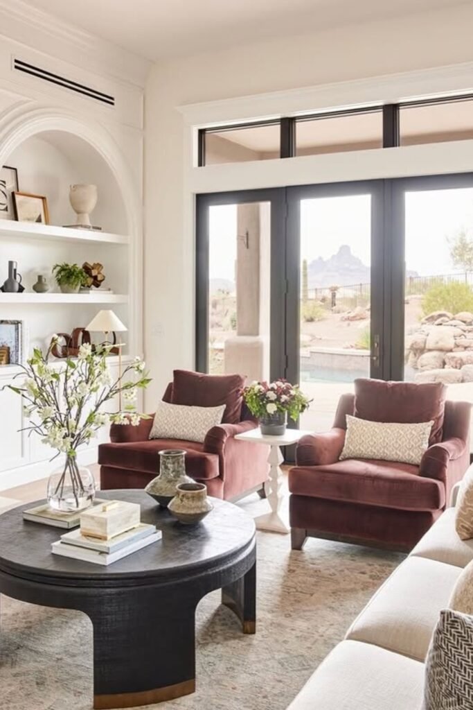 Thoughtfully styled decor and cozy seating make the room both relaxing and effortlessly modern.