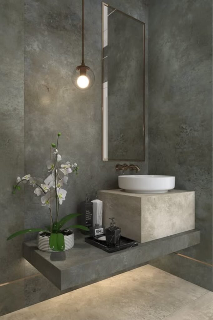 This look is perfect for powder rooms, pair dark tiles with sleek brass fixtures and one statement accessory to keep it sophisticated without overwhelming your space.