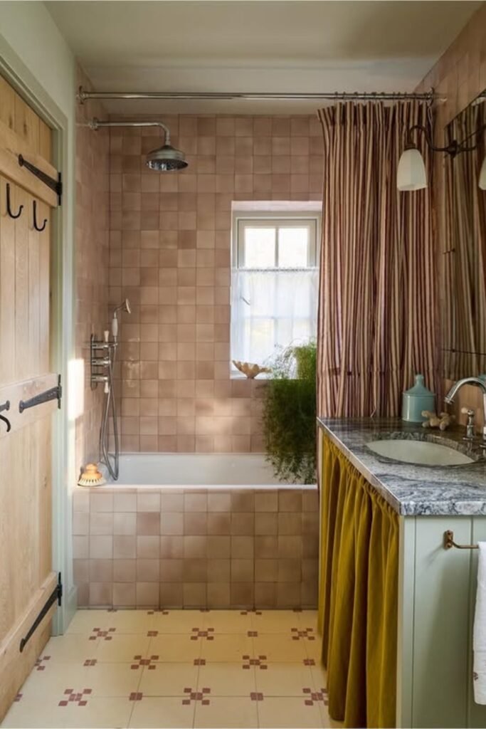 You should pair this with patterned curtains and muted tiles to create a cozy, storybook vibe.