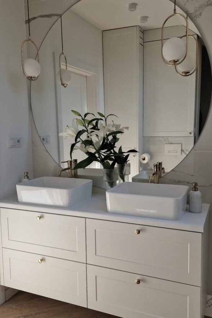 And if you are ready to make a bold move, you can try pivot or suspended mirrors, they are back in style and bring that clean, architectural edge your bathroom might be missing.