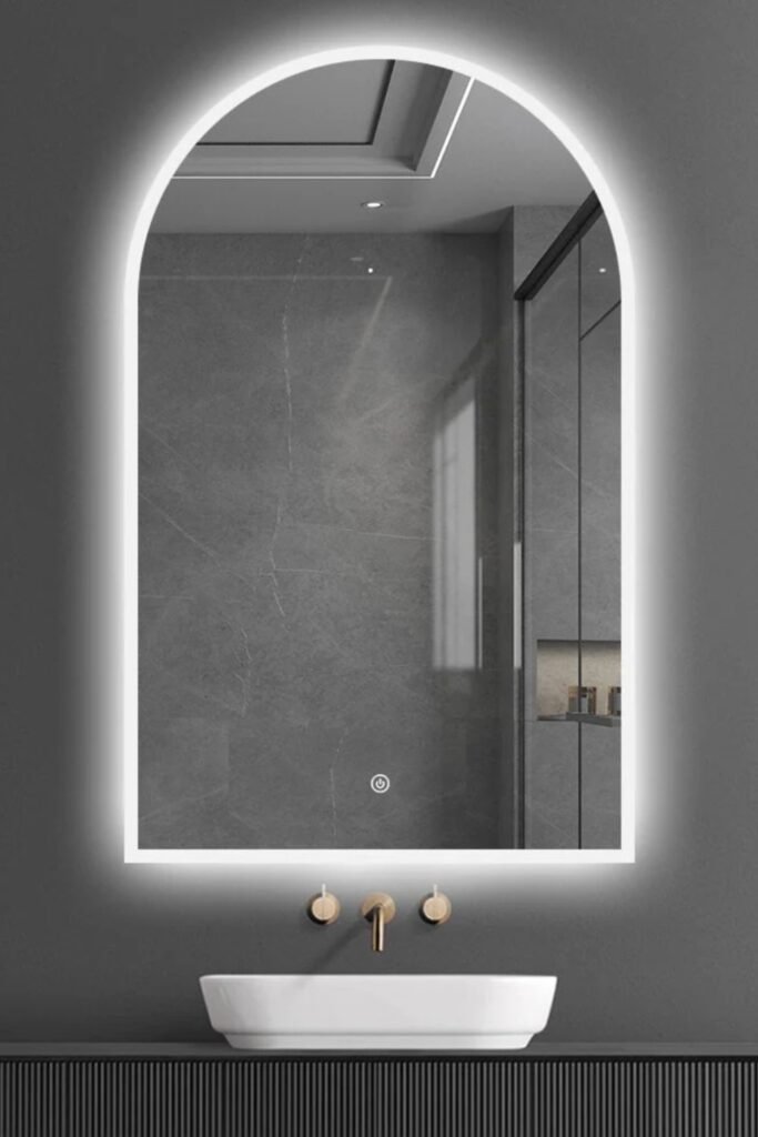 You can turn even the darkest bathroom into a statement space with one bold piece, an arched LED mirror.
