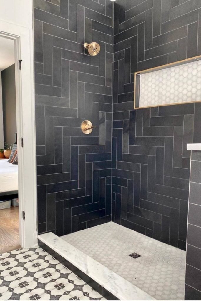 Brass Touch in a Herringbone Shower