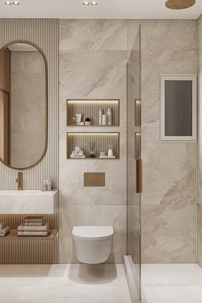 If you want your compact bathroom to feel elegant yet spacious, this layout is your go-to-light, warm, and effortlessly modern.