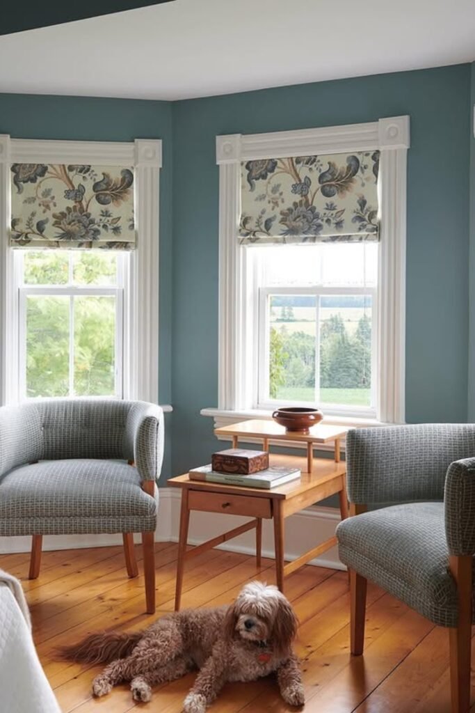 You can use wooden blinds so you control light and privacy, and you might add plants and a single chair so you make the window usable without letting clutter take over.