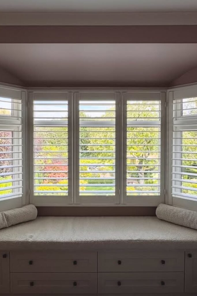 You might use plantation shutters so you control privacy while still letting daylight in, which helps you keep the room bright and comfortable.
