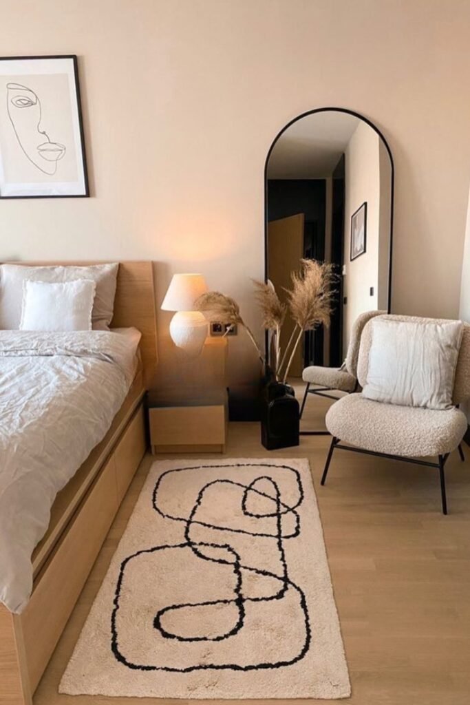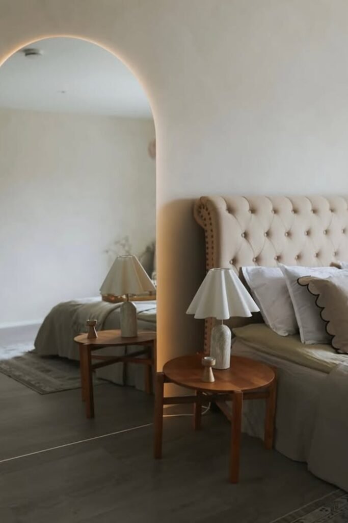 You will see that soft shapes can replace hard edges in bedrooms that aim to feel calm and grounded.