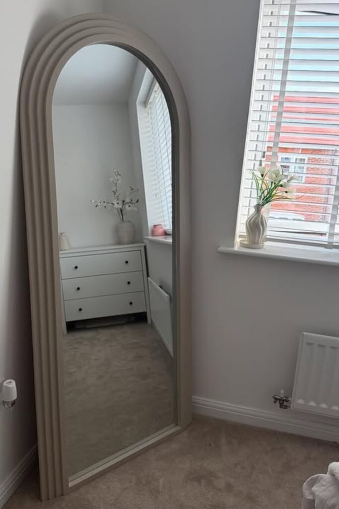 When you place a tall arched mirror beside a reading chair, you will notice it creates a soft zone that feels intentional and lived-in.