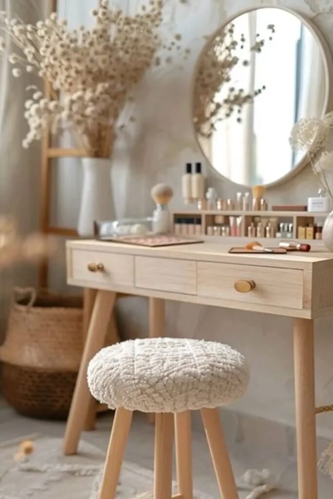 You will see that getting ready feels easier when everything has a place. If you hang a round mirror above a slim wooden vanity, you can make a bedroom feel functional without crowding the room.