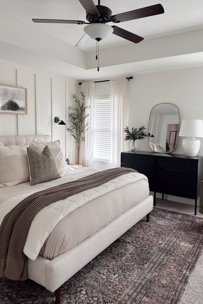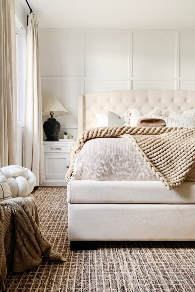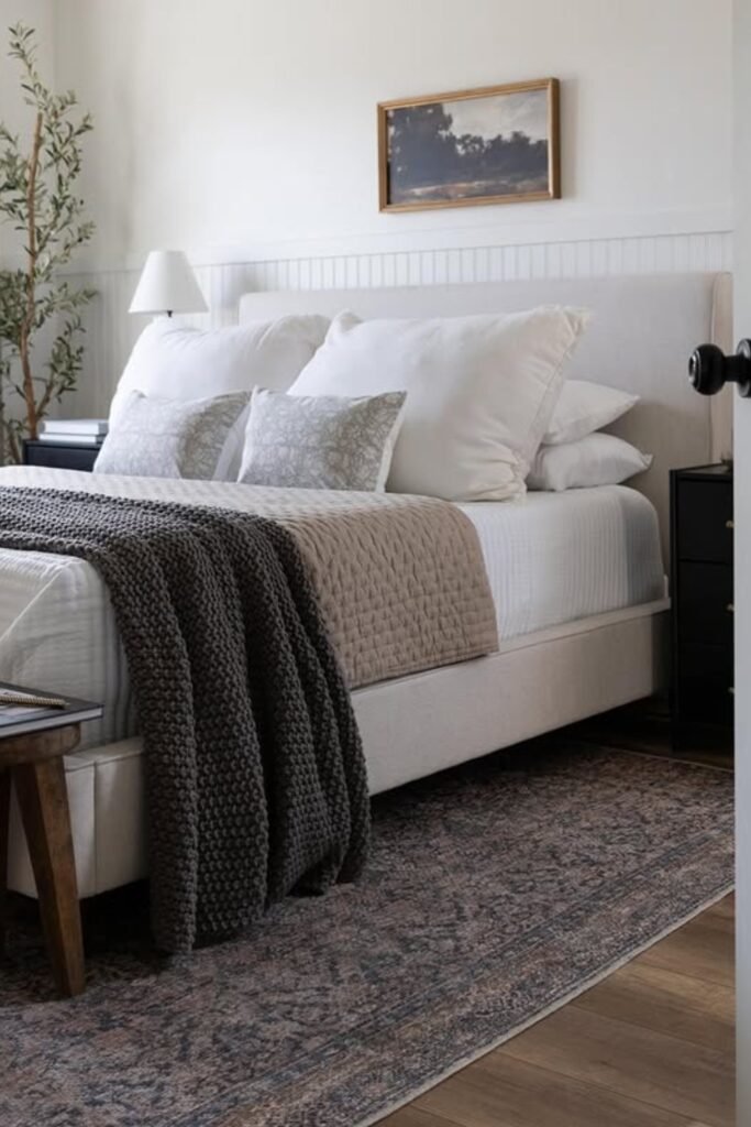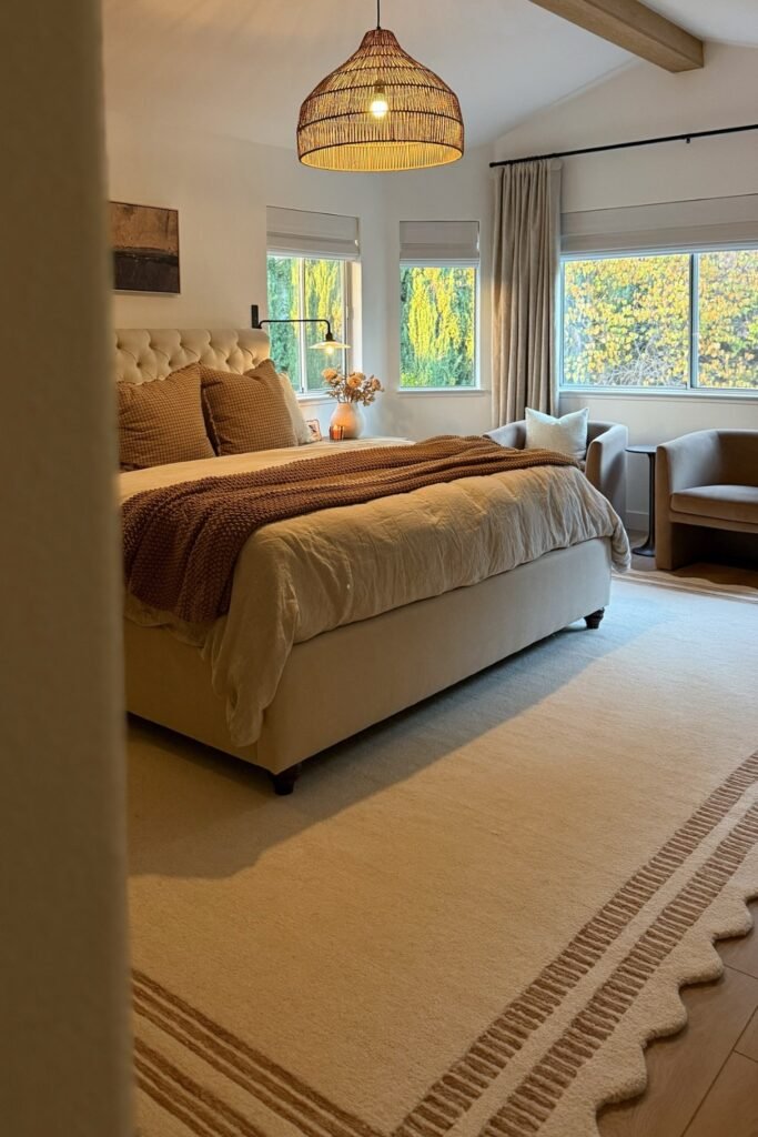If you’ve ever felt like your neutral bedroom blends together too much, this is usually where a rug can fix things for you.
