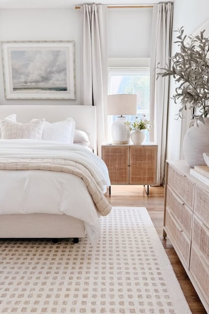 When your bedroom already feels light and airy, your rug shouldn’t change the mood, it should support it.