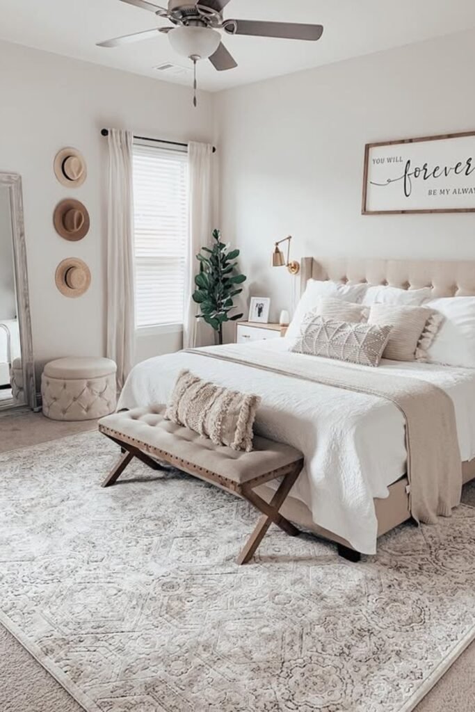 When your bedroom is layered with soft whites and creams, the rug is what brings quiet warmth from the ground up.