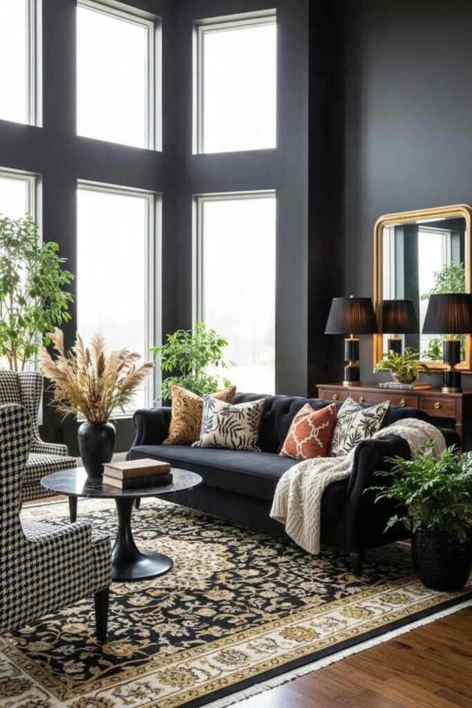 You should pair black walls or furniture with light wood floors, neutral sofas, and mirrors. Let natural light break up the darkness, and you’ll notice your room feels dramatic, not cramped.