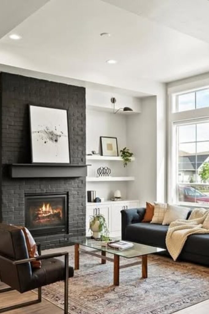 Your black sofa can tie back to the fireplace, and you’ll notice it feels connected, not random.