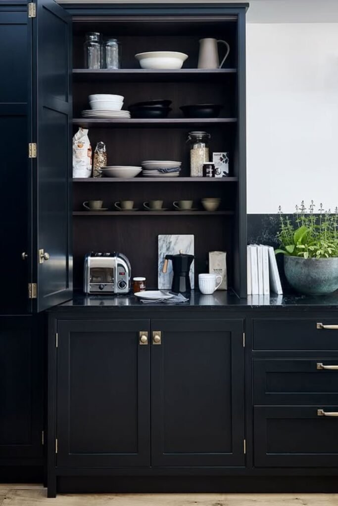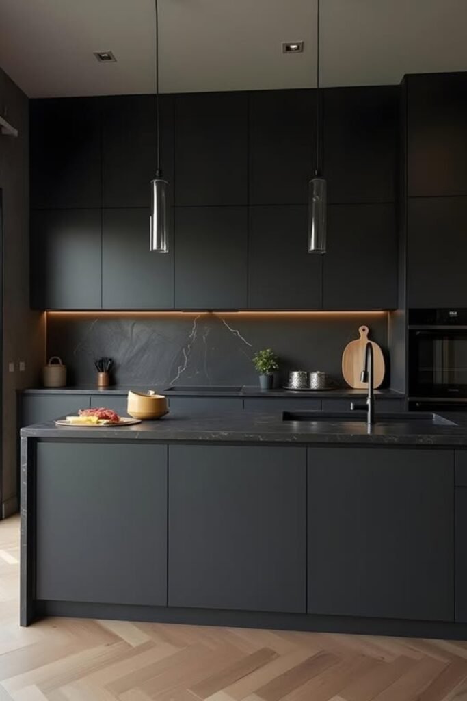 You want your kitchen to look calm, modern, and sculpted? This matte black design does exactly that.