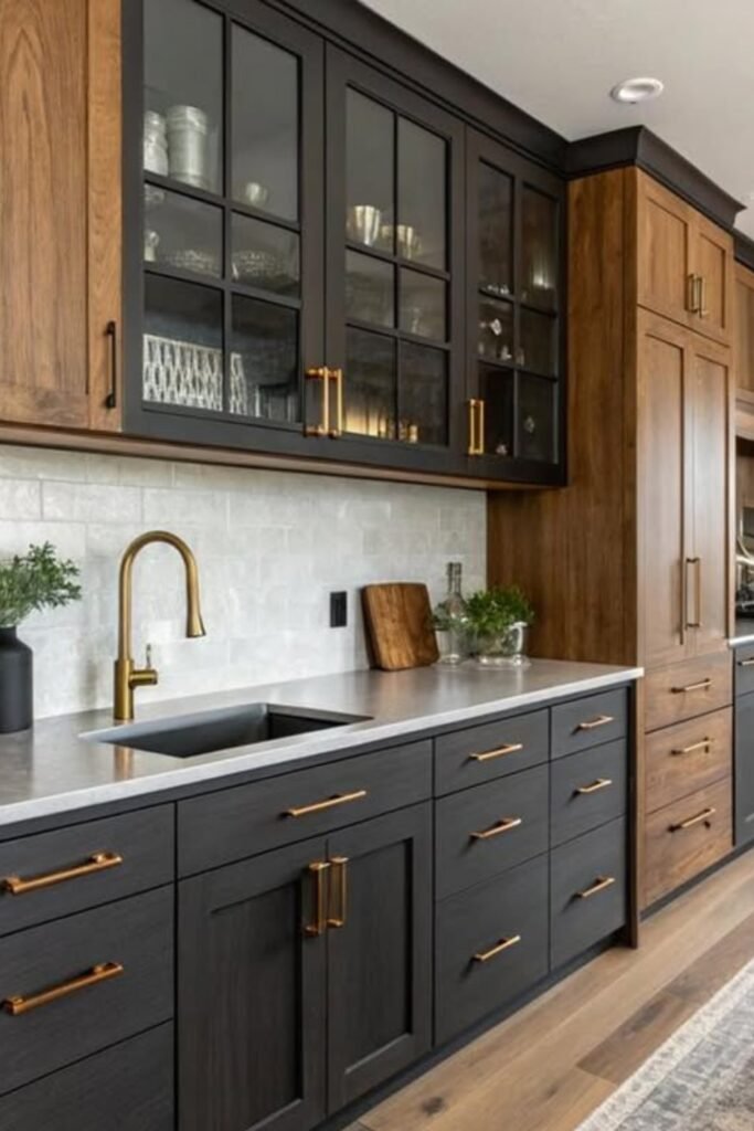 When you mix black and light wood cabinets, you get the perfect blend of bold and soft.