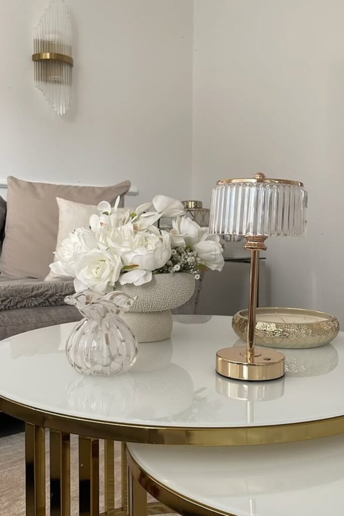 You can keep the table mostly clear and choose one elegant piece with a bit of sparkle. This style works perfectly when you want subtle glamour without chaos.