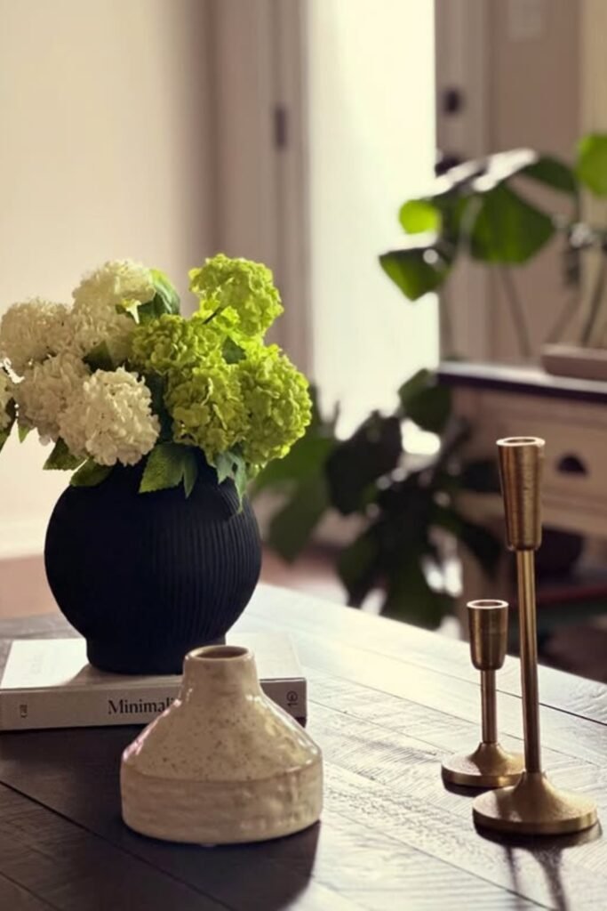 If your table looks cluttered, it is usually because you have gone past three. You can start with fewer pieces first, you can always add more later, but fixing clutter is much harder once it is there.