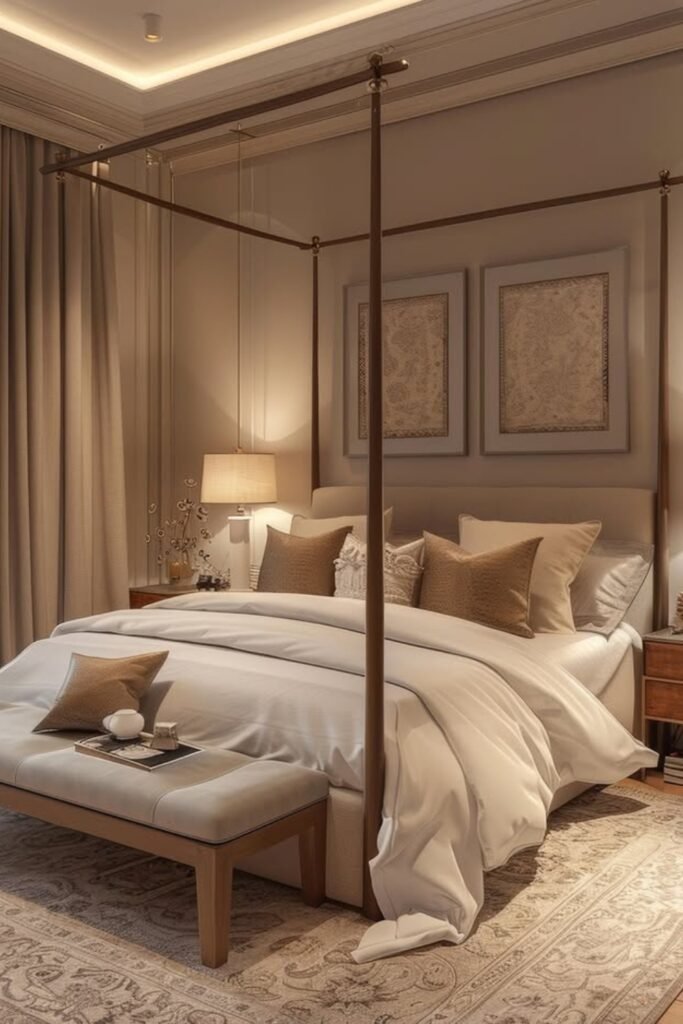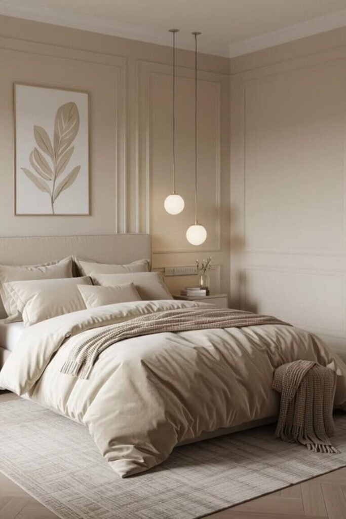 When you use cream walls, beige bedding, and a soft taupe throw, you create a smooth flow that helps your room feel relaxed instead of sharp or busy.