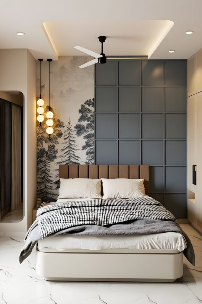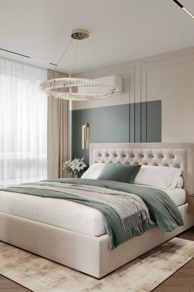 Instead, you can try controlled contrast. When you add a muted green accent panel behind your bed, you introduce personality without overwhelming the room.
