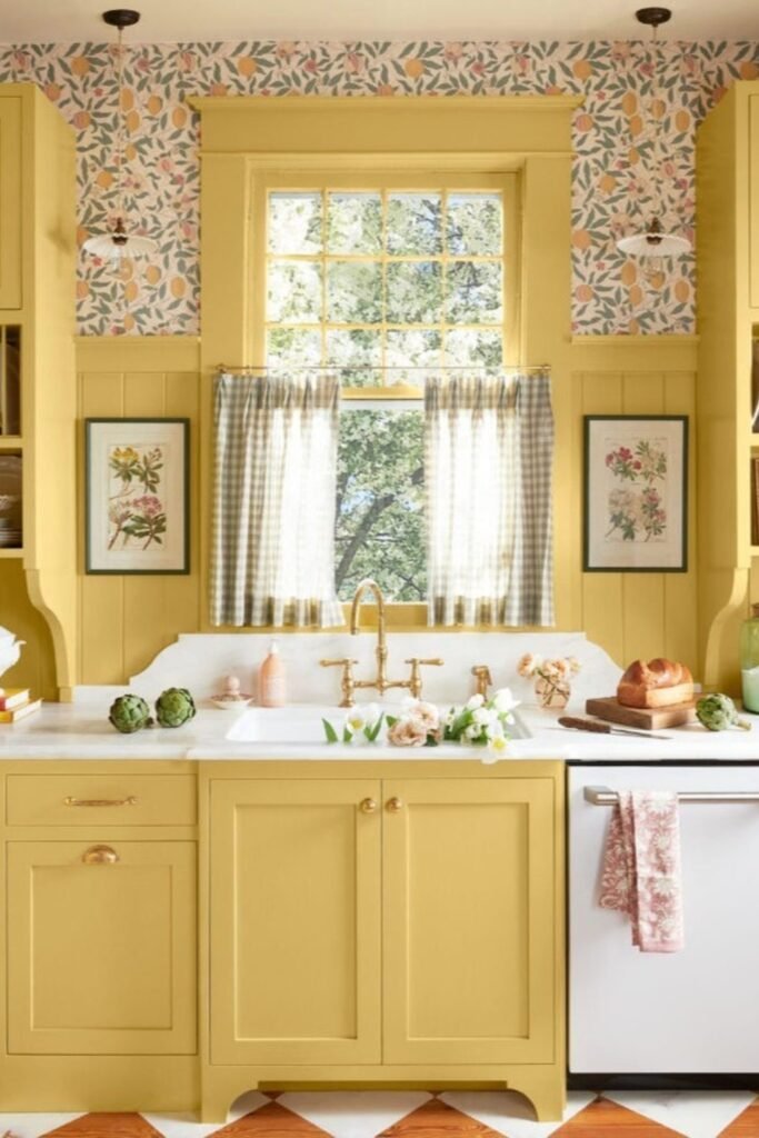 Warm yellow cabinetry instantly brings energy and warmth into the kitchen, which is something neutral spaces often lack.