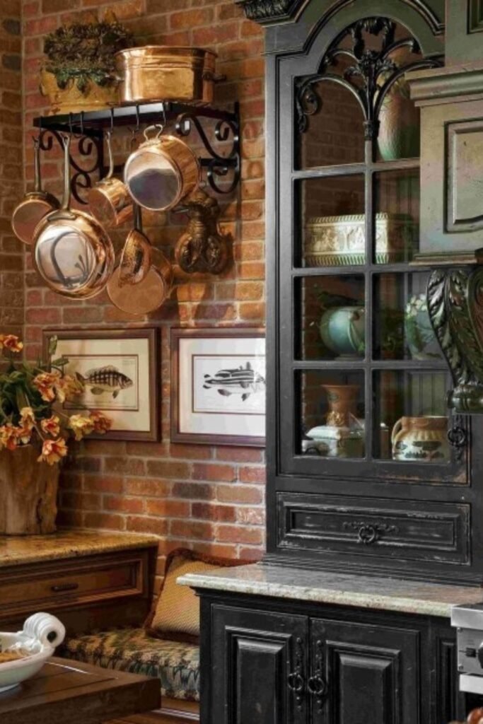 Exposed brick instantly makes a kitchen feel grounded and old-world, which is why it works so well in country spaces.