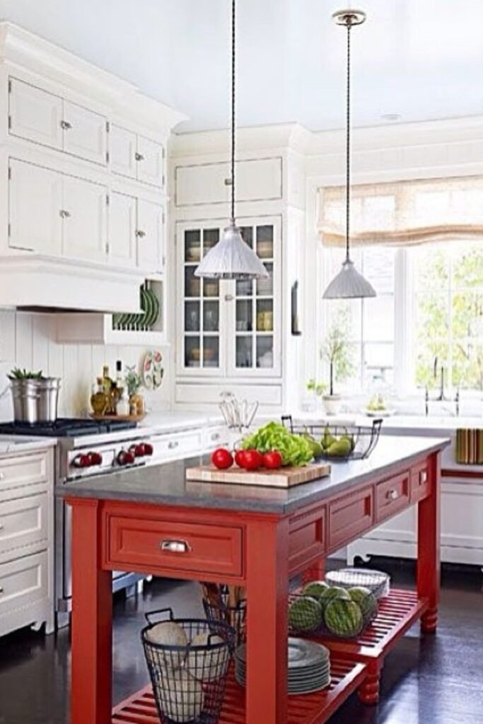If your kitchen feels too white or flat, adding a colored island is an easy way to bring warmth without repainting everything.