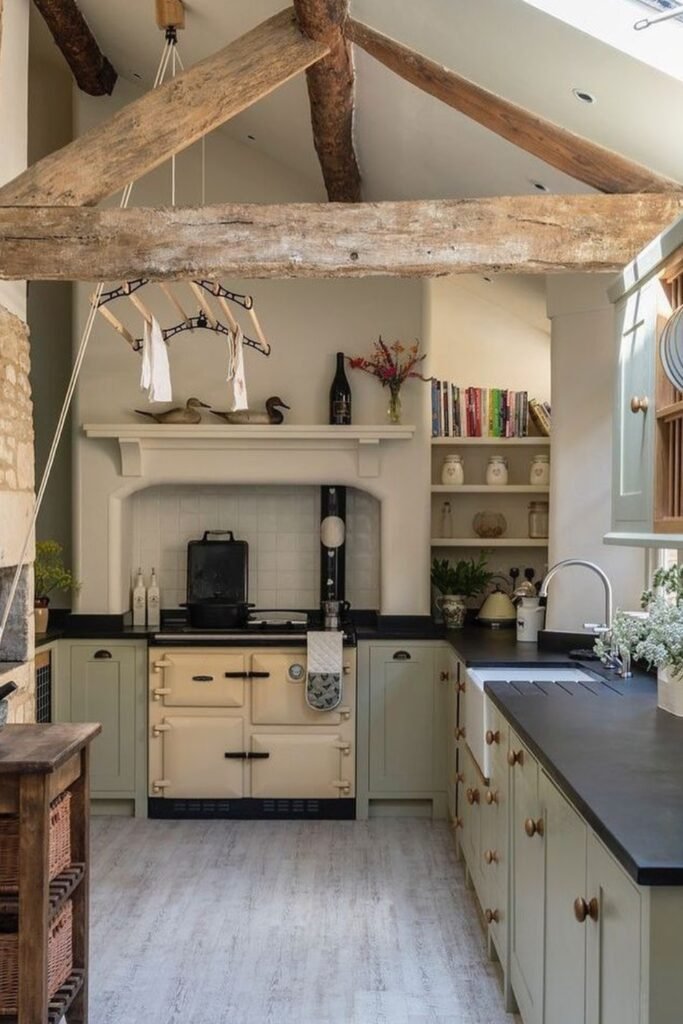 If you want a strong country feel, start with one dominant traditional element, like beams or a farmhouse-style cooker, and build around it.