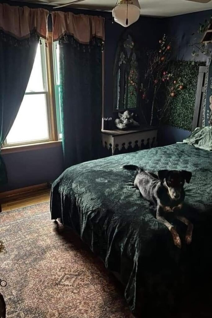 You will notice this works well in medium-sized bedrooms where you want dark academia without going fully moody.