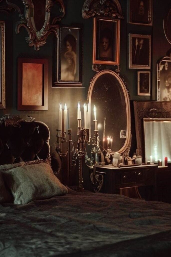 If you love collecting objects over time, you can turn your bedroom into a deeply personal space with layers of mirrors, frames, and candlelight, almost like a private study.