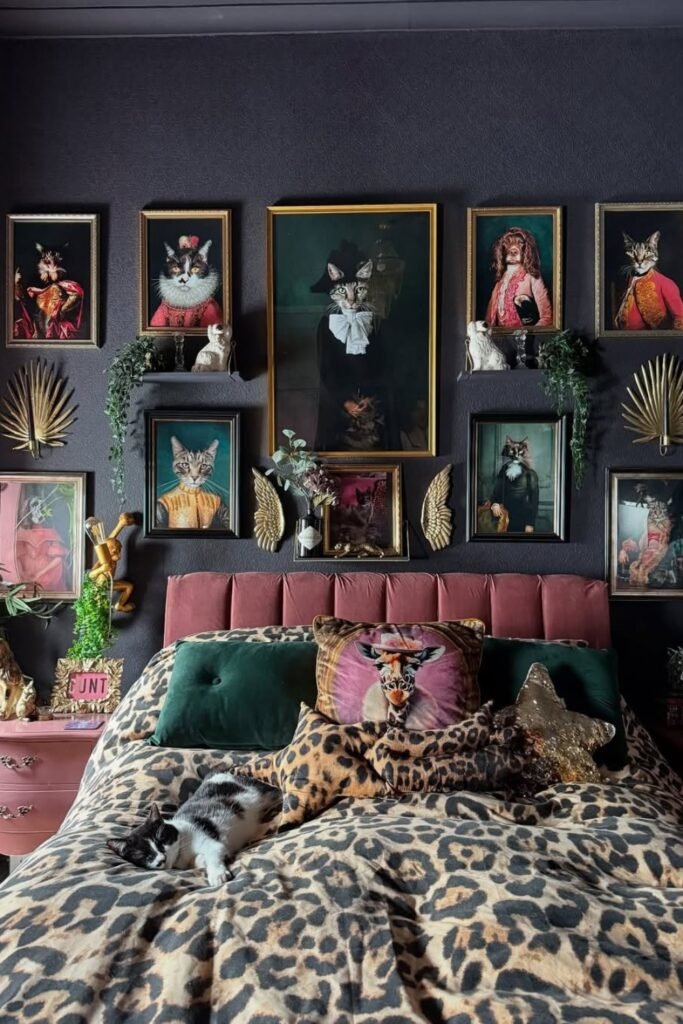 If you love visual richness, you can make a gallery wall packed with portraits and turn your bedroom into a personal archive.