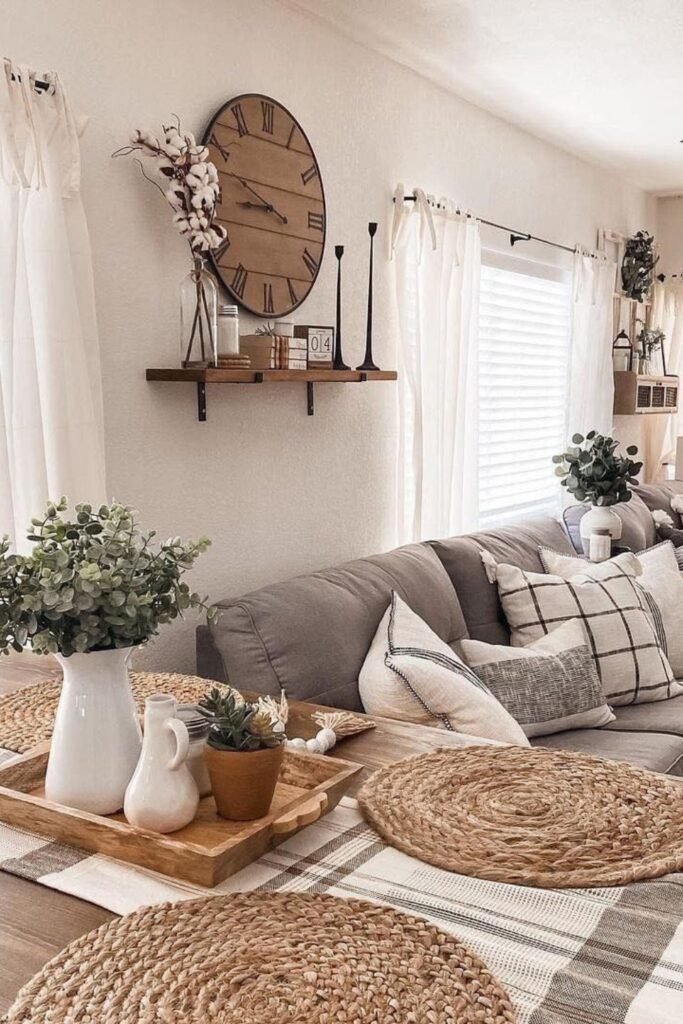 You should keep your palette soft: cream, beige, greige, sage, or warm gray. You need to skip the clutter and choose décor that feels useful or handmade.
