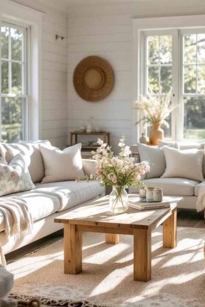 You will feel the soft beige tones and whitewashed wood create a breezy, effortless farmhouse vibe in your living room.
