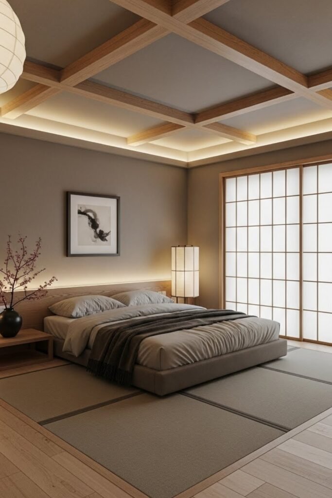 You can keep the bed low and tucked in, which reduces visual pressure and helps the space feel safe instead of exposed.