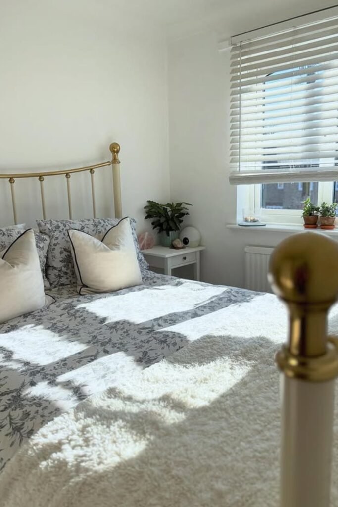 If your bed sits near a window, you can layer it with soft textures and a solid headboard so the energy doesn’t feel restless.