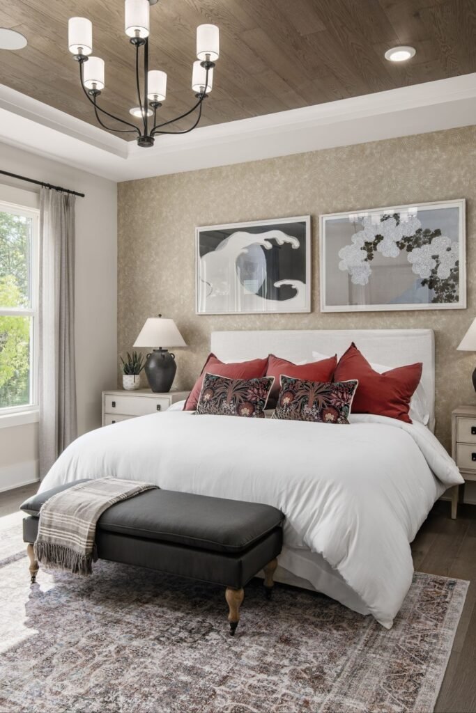 You should make artwork, lamps, and the headboard work together so nothing feels random or unfinished.