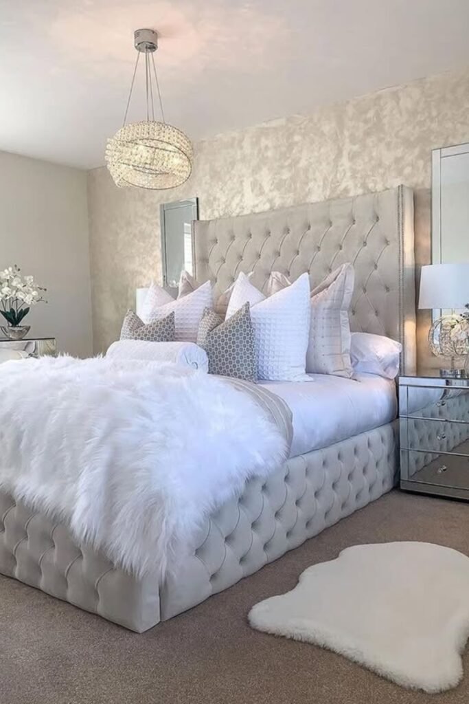You will find this style works beautifully in medium to large bedrooms where you want softness, shine, and comfort all at once.