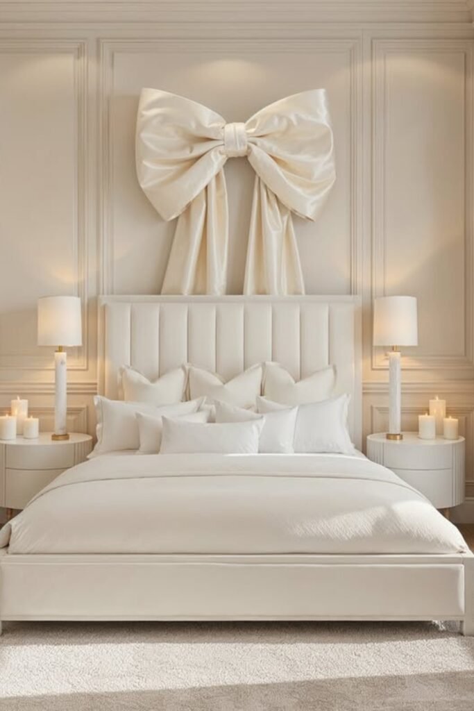When you add an oversized bow above the bed, your ivory bedroom instantly becomes a statement.