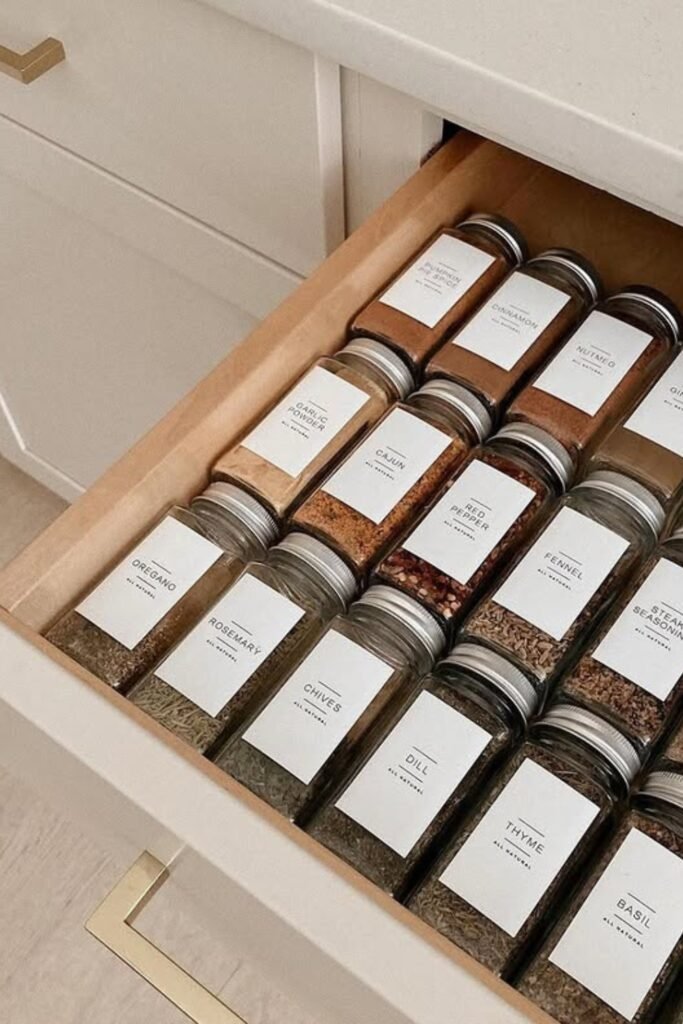 You can also add drawer dividers for utensils or spice packets so things don’t slide around.