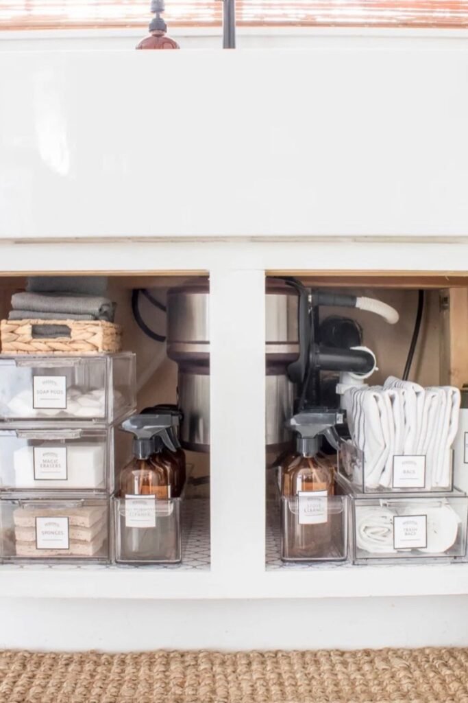You shouldn’t just buy bins and hope they’ll work; you must measure first. You should get organizers that actually fit your cabinet width and height.