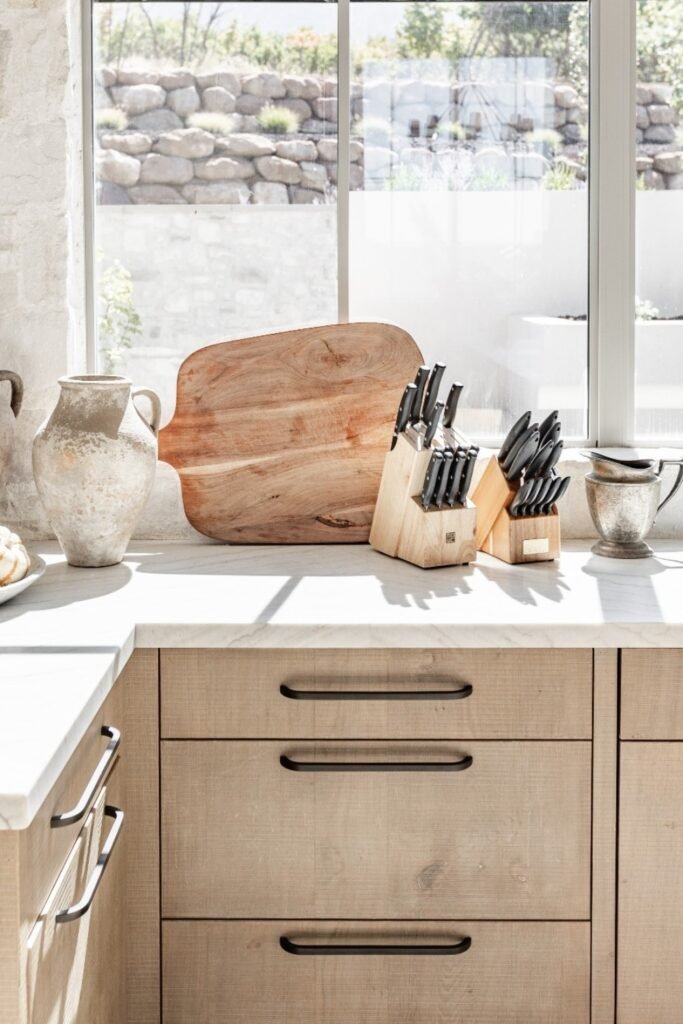 You might see people using oversized knobs or bold pulls as statement pieces instead of hiding them away.