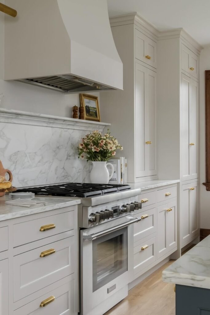 If your kitchen sees heavy use, you must skip hardware with tiny grooves or details because they trap grease and make it harder for you to clean.