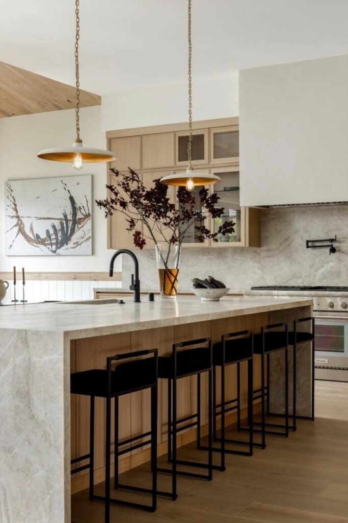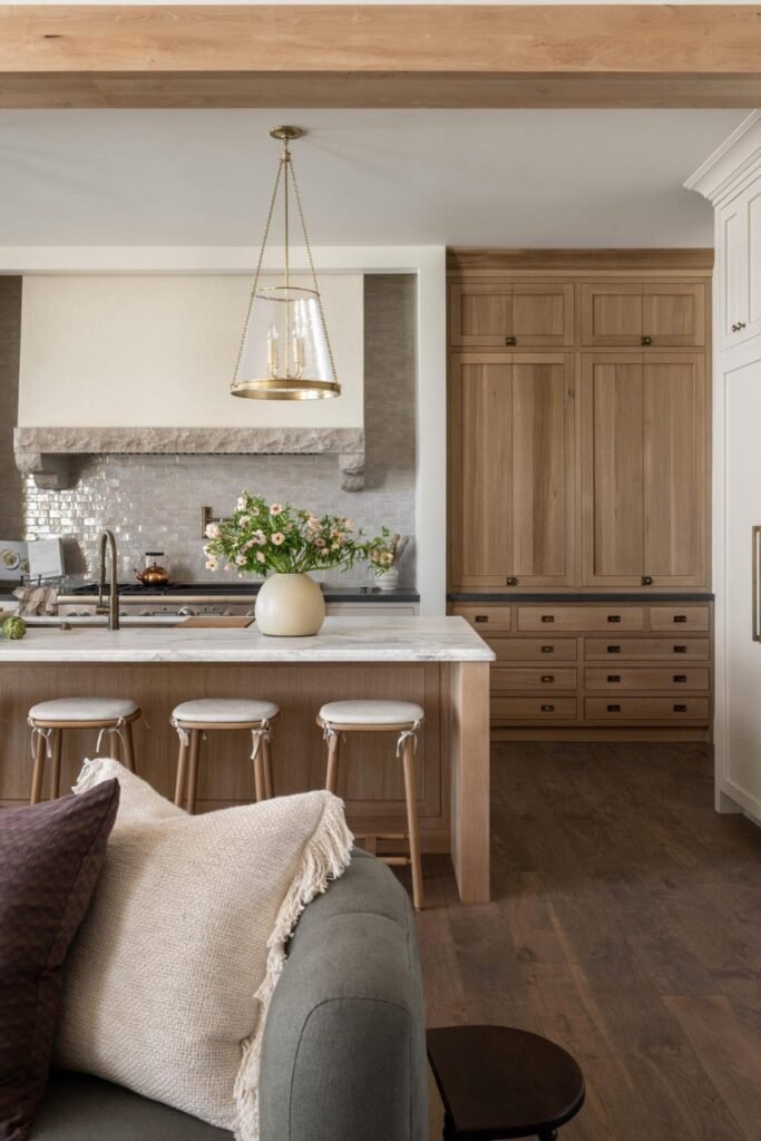 Do this, and you will get a kitchen that will look warm, natural, and perfectly balanced.
