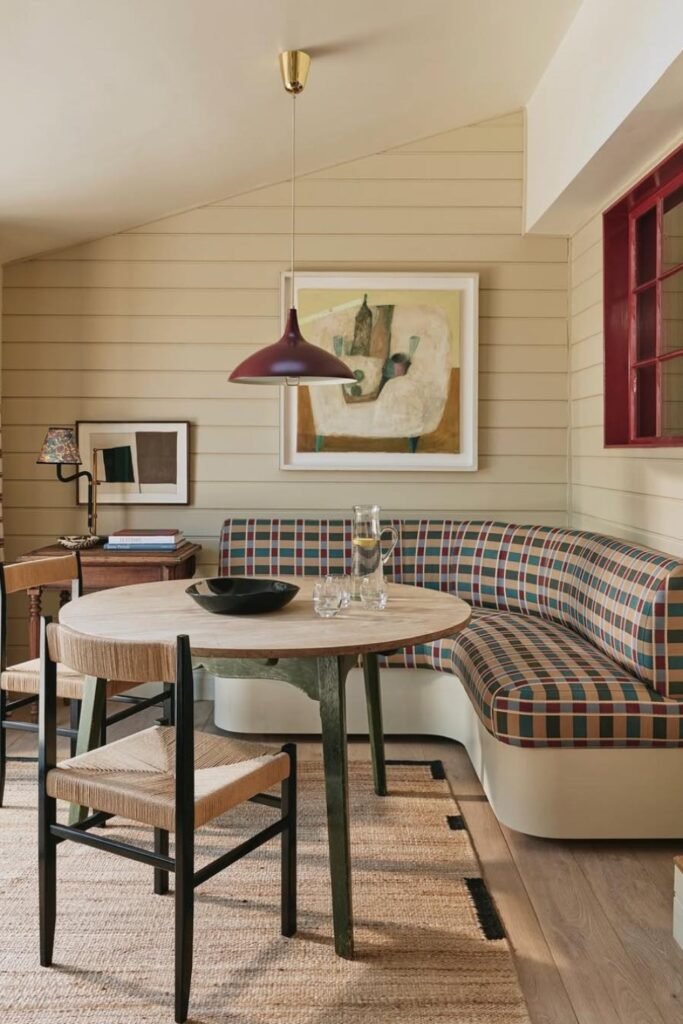 You don’t need expensive furniture to make your nook work. You can add patterned cushions, a simple pendant light, or even a second-hand bench with fresh paint.